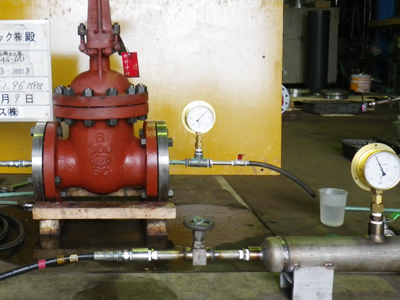 バルブ仕切弁(ゲート弁)整備後、水圧耐圧試験